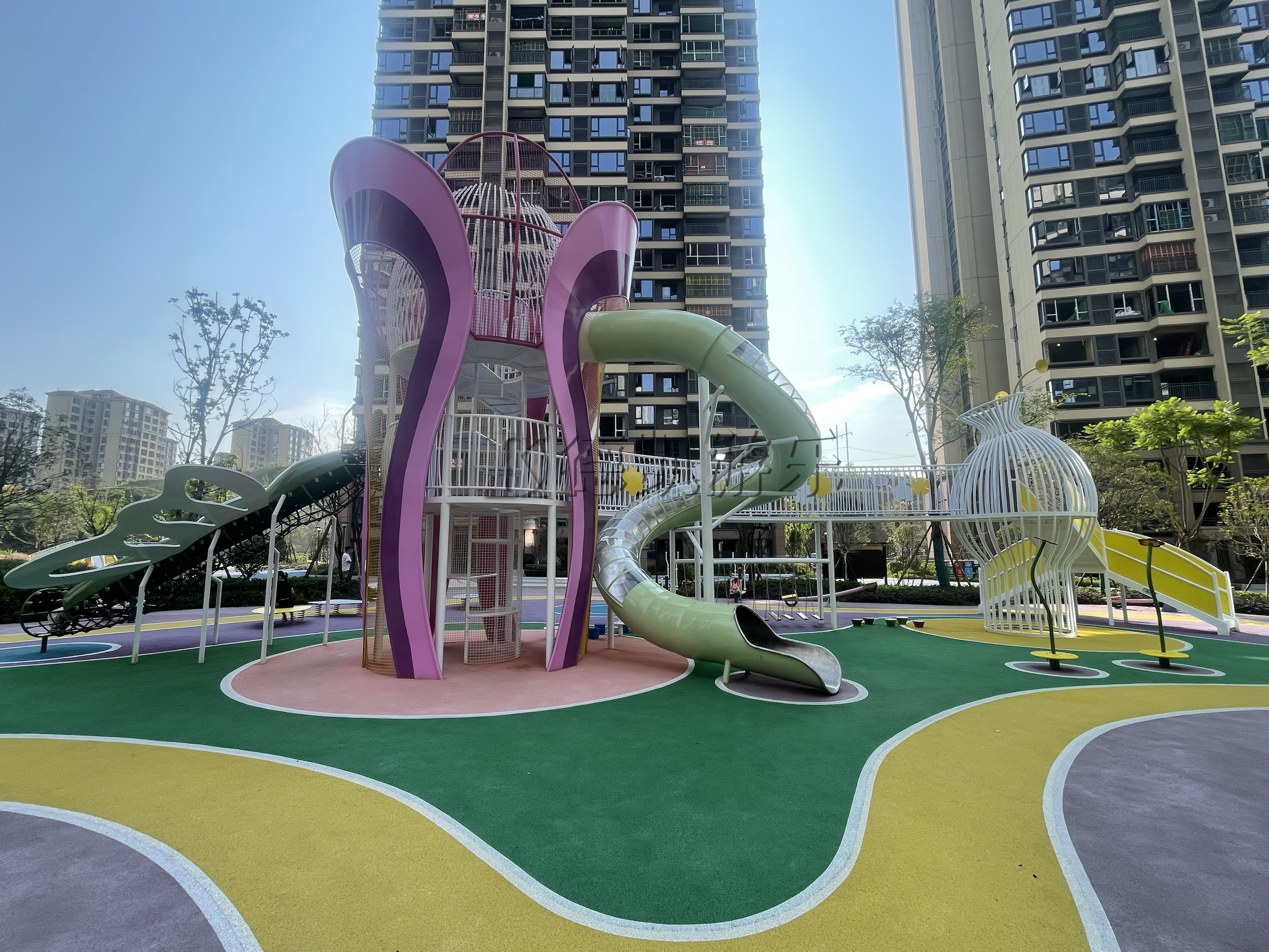 一個(gè)設(shè)施集成多種游戲功能,如集攀爬、滑滑梯、平衡木、秘密通道于一體的綜合性游樂(lè)設(shè)施。這類(lèi)設(shè)施空間利用率高,能同時(shí)滿足不同年齡段孩子的需求。